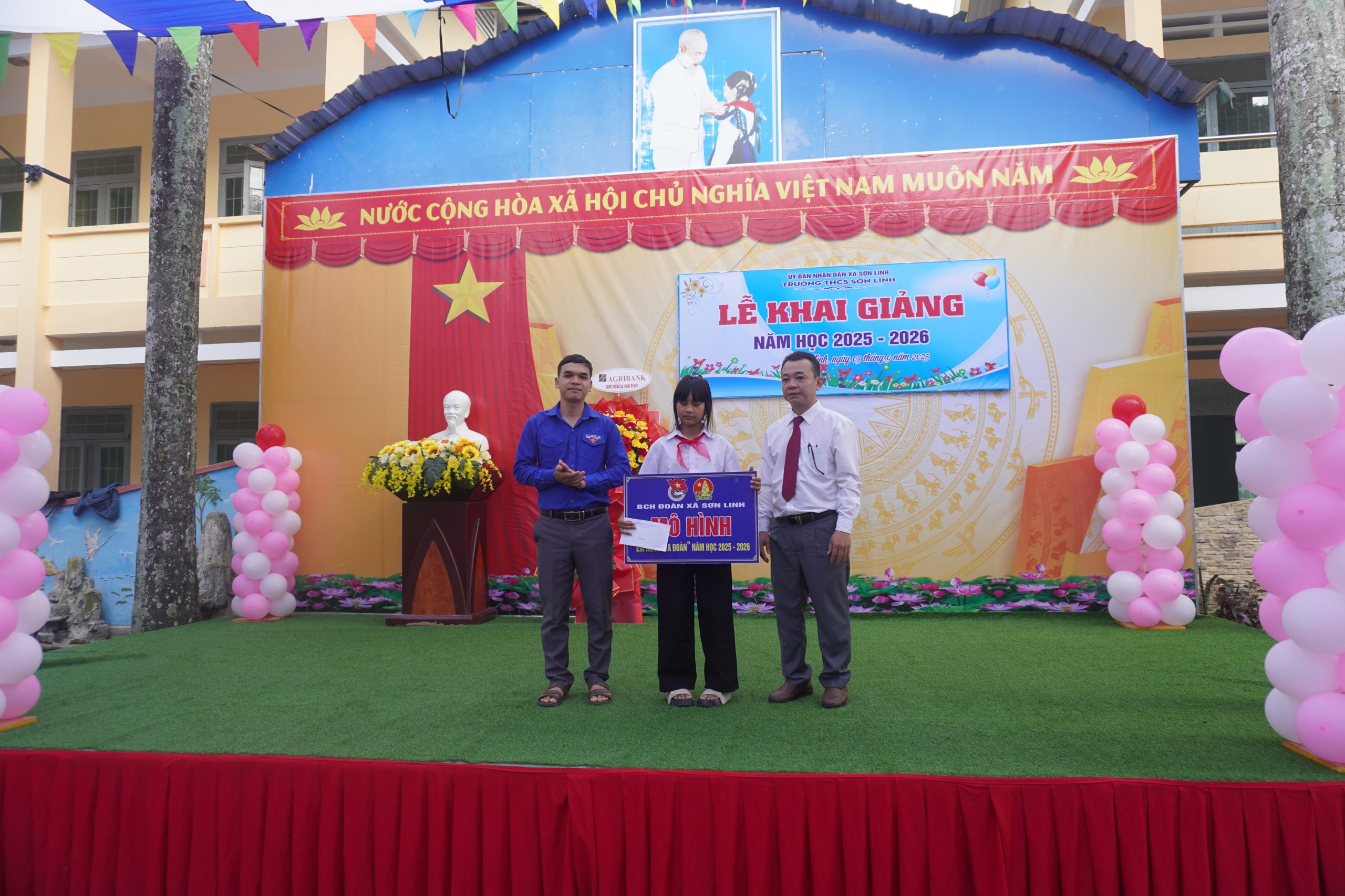 🏆🏆🏆 Đến dự Lễ khai giảng tại có đồng chí Sang Thị Minh Ngọc – Phó bí thư Đảng uỷ – Chủ tịch UBND xã Sơn Linh, đồng chí Trần Đình Vũ – Chánh văn phòng Đảng Ủy xã Sơn Linh, đồng chí Đinh Xuân Đỏ – Phó bí thư Đoàn xã Sơn Linh.